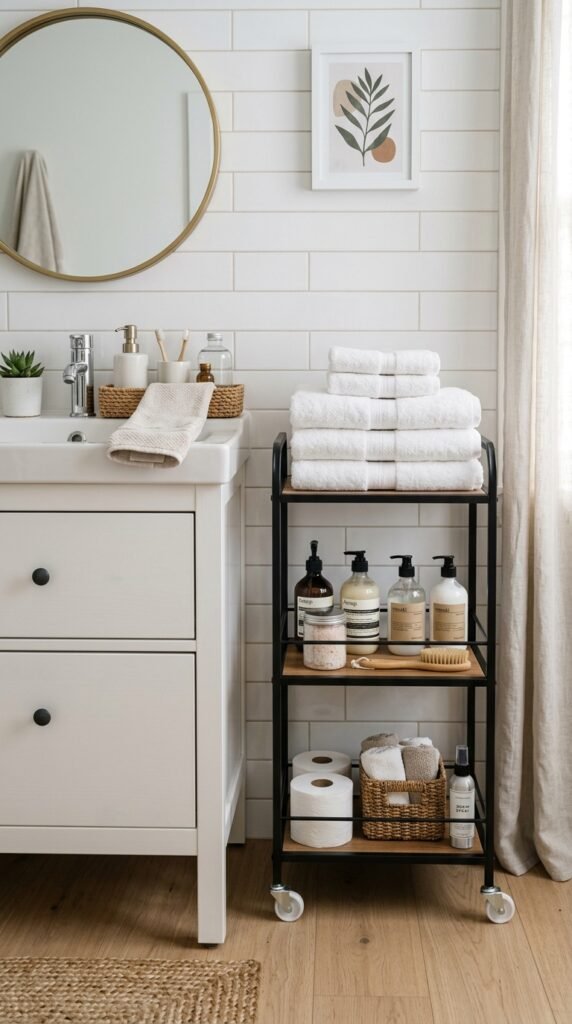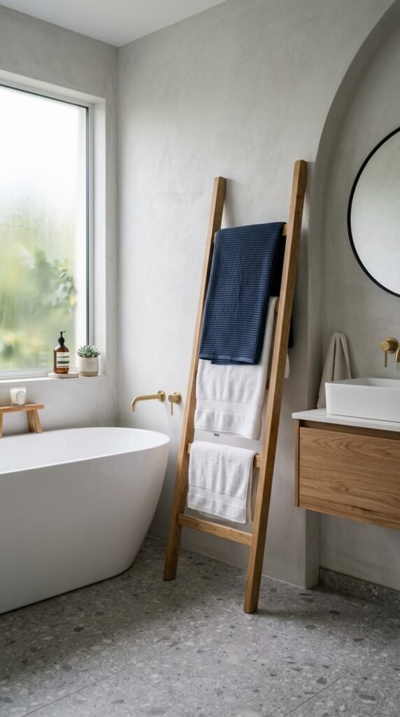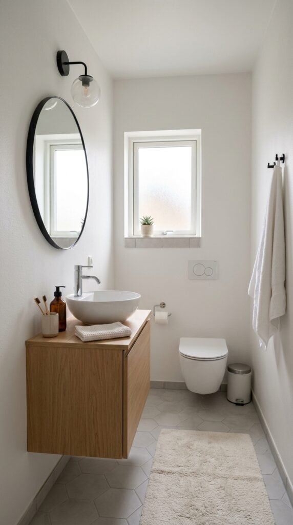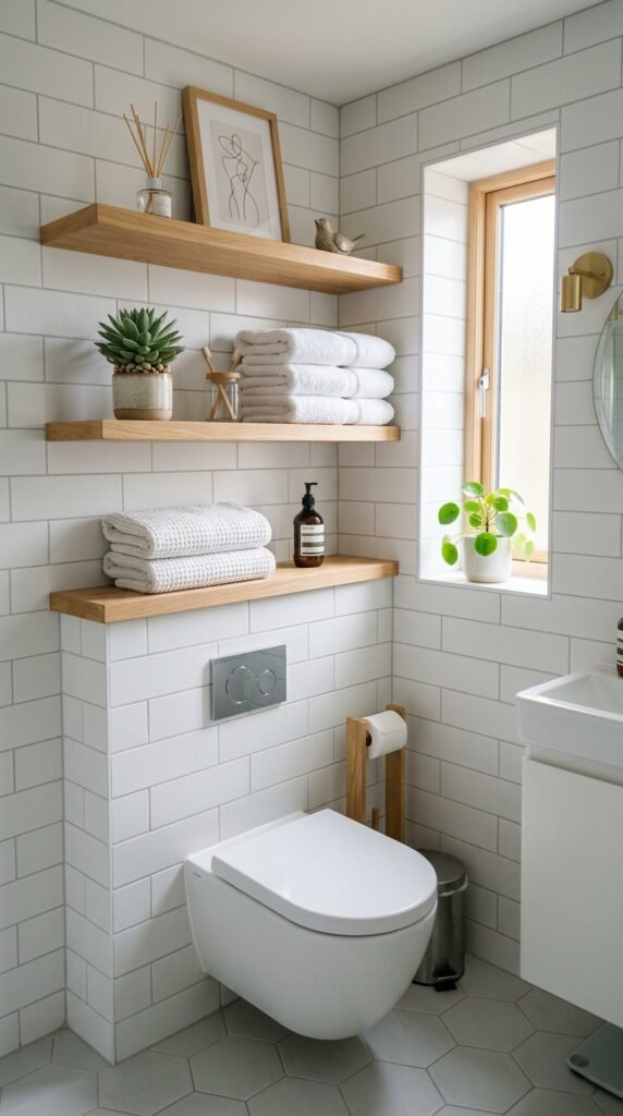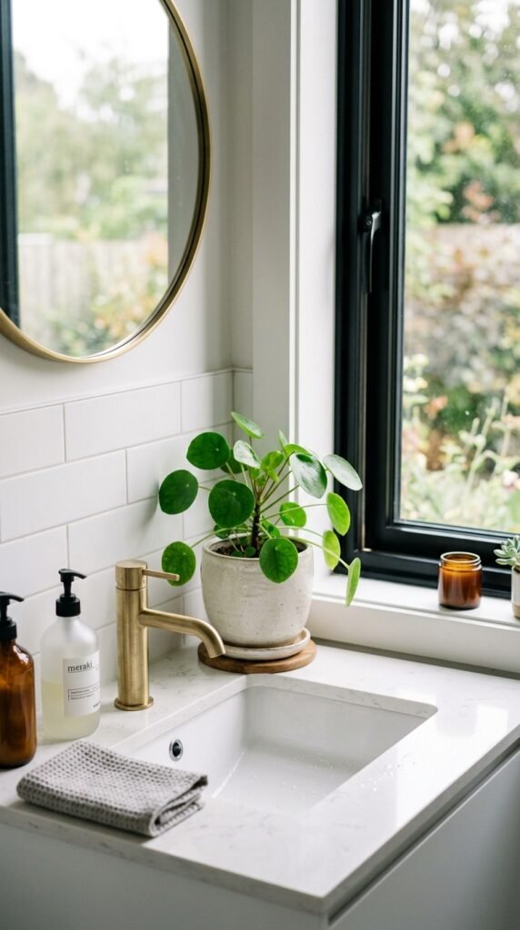 A marble window sill is a subtle upgrade with a big visual effect. Perfect for small bathrooms, it brightens the room and adds charm. Small DIY cuts or marble-look laminates fit most window frames. Place plants or toiletries on the sill for practicality without clutter.