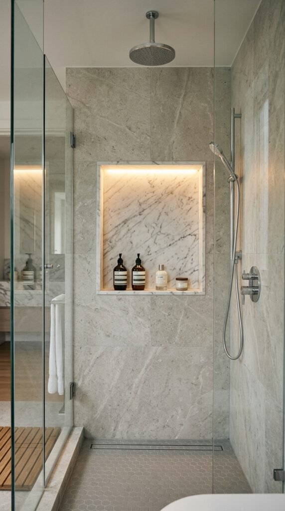 5. Marble Shower Niche for Functional Style