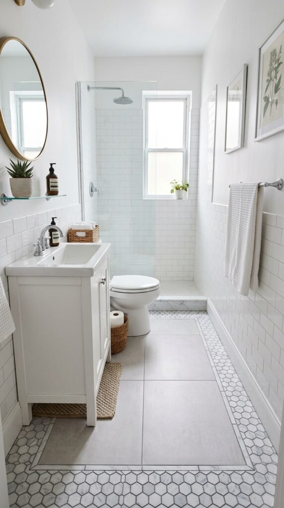 Mixing marble with subway tiles creates a modern yet timeless look. Use subway tiles on walls while keeping marble floors for elegance. This combination is budget-friendly and gives texture contrast. Grout color can subtly change the vibe—light gray for warmth or crisp white for brightness.