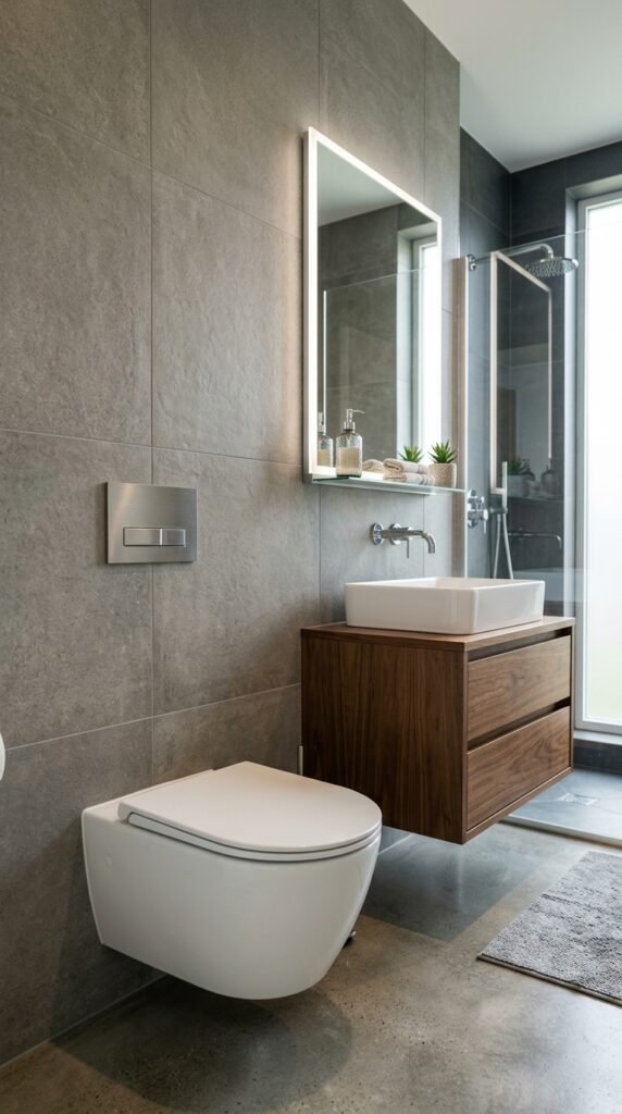 Lighting changes how a small bathroom feels. A single ceiling light often leaves shadows.